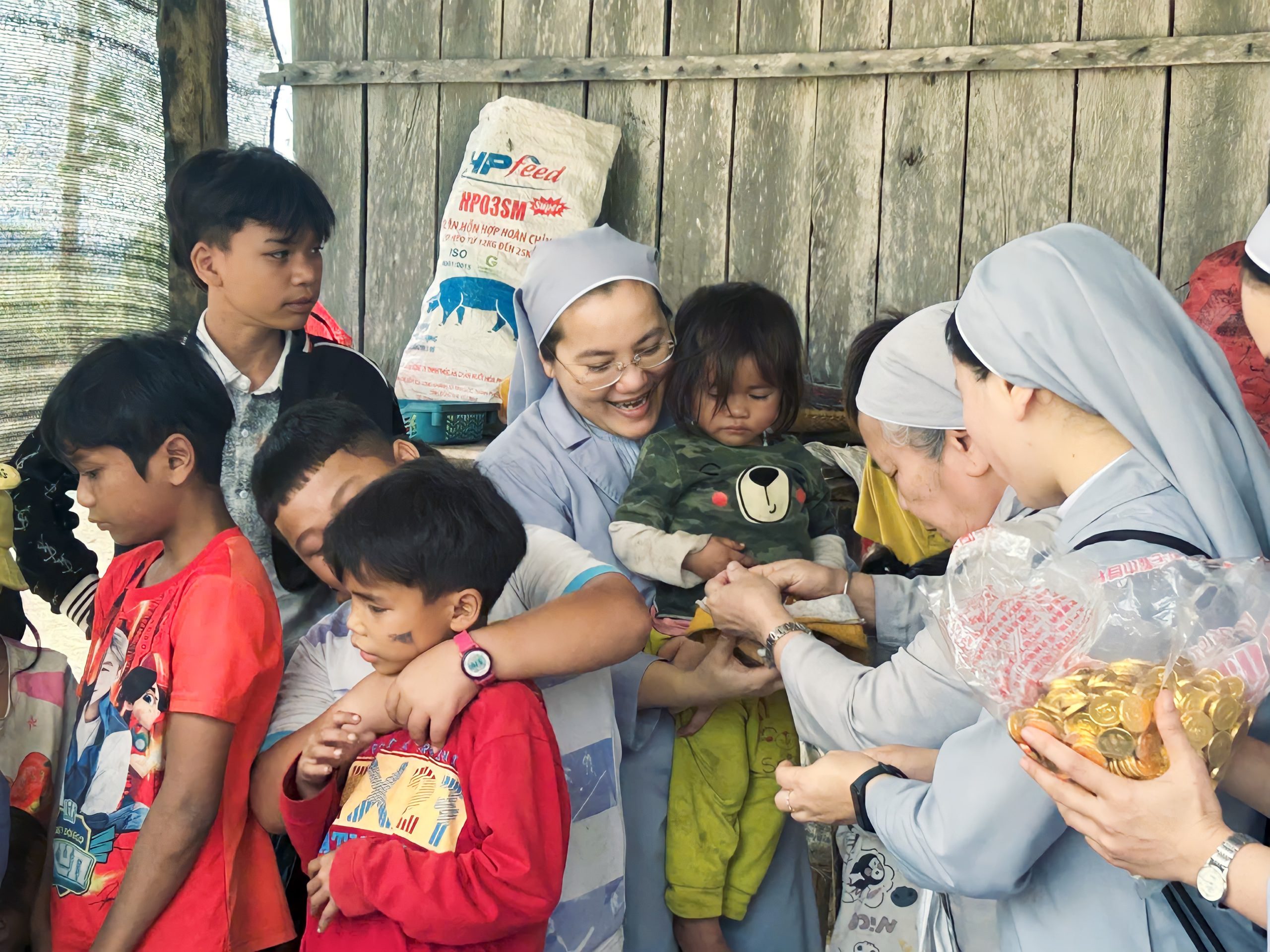 Thay vì chúng tôi cho đi, chính chúng tôi lại được đón nhận – nơi họ, chúng tôi cảm nghiệm được sự gần gũi, dễ mến, tình người chân thật không vụ lợi, không ganh đua. Người trẻ sẵn sàng giúp người già mang quà về nhà. Những điều tưởng đơn sơ ấy lại là bài học quý báu cho chúng tôi – những người sống đời thánh hiến, luôn cần được nhắc nhớ về sự đơn sơ và tình liên đới.