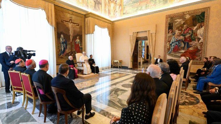 Mở đầu buổi tiếp kiến, Đức Thánh Cha gửi lời chào đến Đức Hồng y Tarcisio Isao Kikuchi – Tổng Giám mục Tokyo, Nhật Bản, và là Chủ tịch của Caritas Quốc tế – cùng toàn thể phái đoàn. Đức Thánh Cha đã bày tỏ niềm vui và lòng biết ơn sâu sắc đối với tổ chức đã và đang cống hiến sự phục vụ kiên định cho toàn thể Giáo hội qua việc thể hiện sự ưu tiên của Đức Kitô dành cho những người dễ tổn thương nhất.
