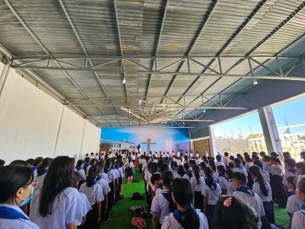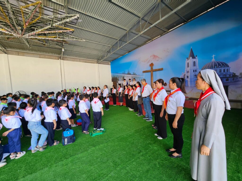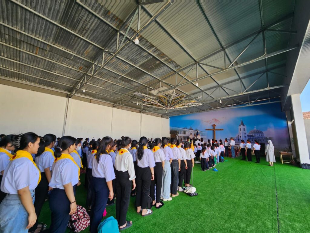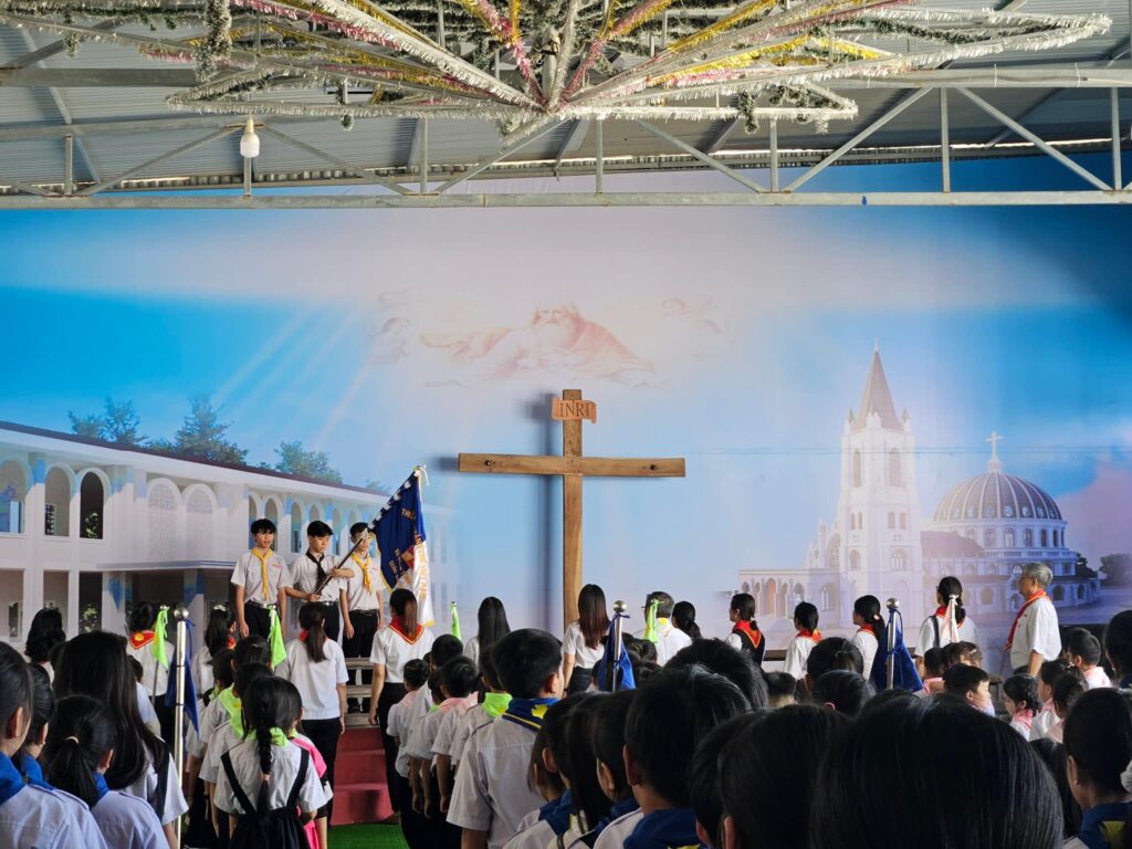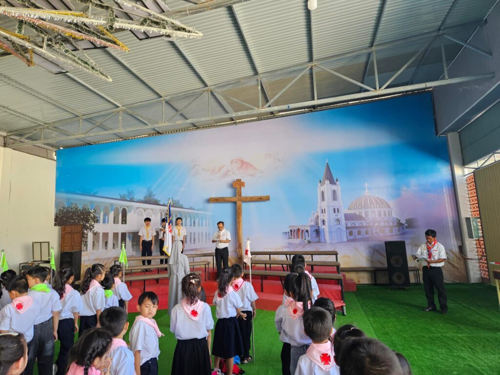 Sáng Chúa Nhật thứ 3 Mùa Chay, Xứ Đoàn Thánh Tôma Thiện Võ Lâm (Kon Tum) đã có nghi thức chào cờ. Cha Tuyên Uý xứ đoàn Tađêô Võ Xuân Sơn đã hướng dẫn nghiêm tập cho đoàn sinh. Hướng dẫn các Tông Đồ Đội Trưởng thực hành nhiệm vụ của mình.