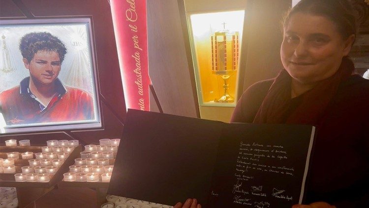 Vatican News (20.10.2025) – Trong một cuộc phỏng vấn với Mạng lưới Đài Truyền hình Lời Vĩnh cửu, bà Antonia Salzano, mẹ của Thánh Carlo Acutis, chia sẻ niềm xúc động sâu sắc khi được hiện diện cùng gia đình trong Thánh lễ tuyên thánh con mình vào ngày 7/9/2025. Bà nói: “Đương nhiên, đó là một đặc ân, nhưng cũng là một bổn phận, vì tôi cũng được mời gọi nên thánh. Tôi phải làm gương trước tiên”.