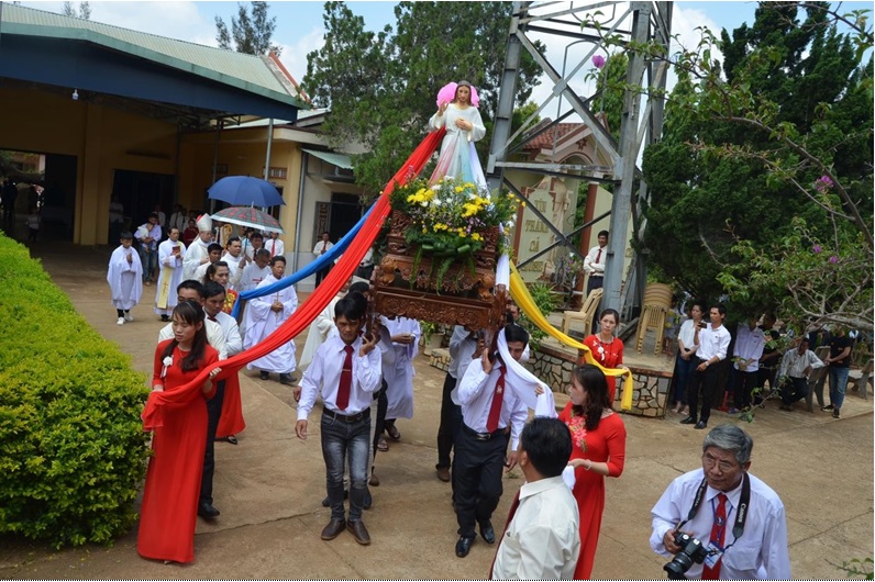Cộng đoàn còn nhận trên 40 bức tượng Lòng Chúa Thương Xót cao 1mét 2, nhiều tài liệu đạo đức bồi dưỡng đức tin của Tổng giáo phận Sài Gòn và quý ân nhân trao tặng để phân phát cho các giáo xứ, các làng và các giáo điểm trong vùng Gia lai.