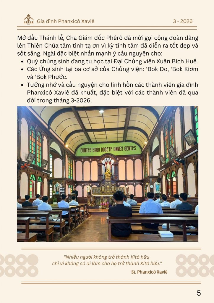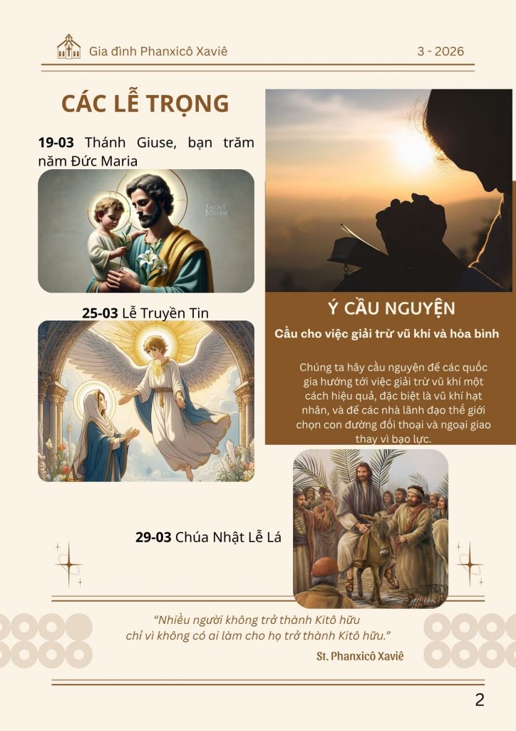 Bản Tin Gia Đình Phanxicô Xaviê Tháng 3/2026