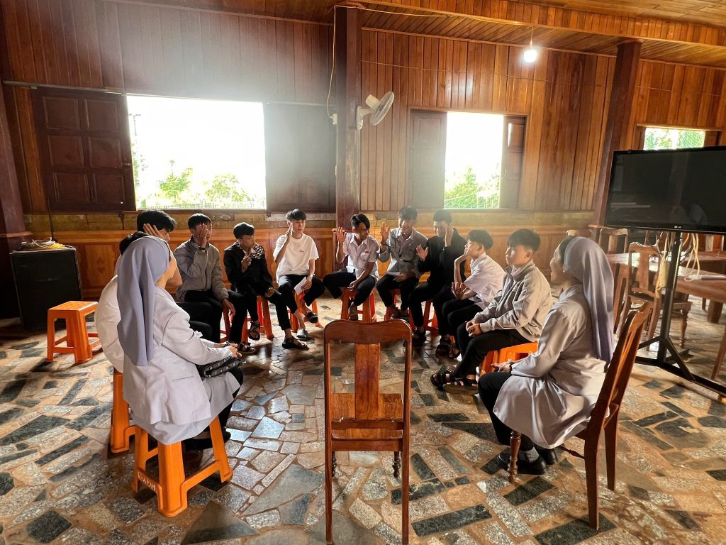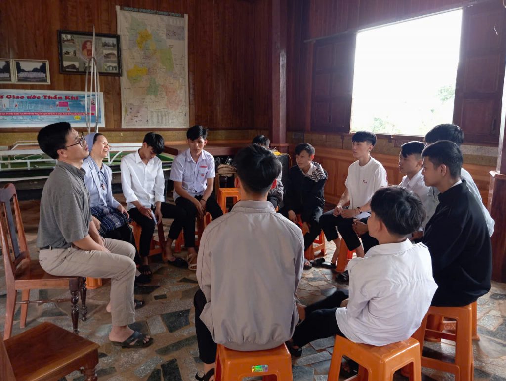 Song song với đó, quý sơ Dòng Con Đức Mẹ Vô Nhiễm đã nhiệt tình đồng hành với các em qua các giờ thảo luận nhóm và sinh hoạt. Những chia sẻ gần gũi, chân thành của quý sơ đã giúp các em cởi mở hơn trong việc bày tỏ những thao thức, khó khăn cũng như ước mơ của mình. Bầu khí gia đình thân thiện đã tạo nên một không gian an toàn để mỗi người được lắng nghe và được nâng đỡ.