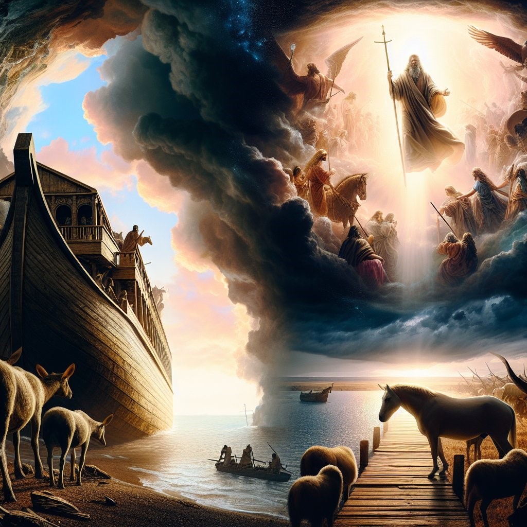 Tác giả sách Sáng thế 6,11-13 kể lại : “Đất đã ra hư hỏng trước nhan Thiên Chúa và đầy bạo lực. Thiên Chúa nhìn đất và thấy nó đã ra hư hỏng, vì mọi xác phàm đã theo nếp sống hư hỏng trên mặt đất. Thiên Chúa phán với ông Nô-ê : “Ta đã quyết định giờ tận số của mọi xác phàm, vì tại chúng mà đất đầy bạo lực : này Ta sắp tiêu diệt chúng cùng với đất”. Như vậy, vào thời Nô-ê, đã có những người hoàn toàn để mình bị cuốn vào những thực tại trần thế, không màng đến lời Thiên Chúa dạy, không màng đến trách nhiệm cai quản muôn loài thụ tạo. Vì thế, nhiều người đã ra hư hỏng, sự dữ lan tràn. Thiên Chúa đã báo cho ông Nô-ê để chuẩn bị thời điểm Chúa xóa sạch mọi vết tích của bạo lực từ nếp sống hư hỏng của con người để làm nên trời mới đất mới như Thiên Chúa phán : “Ta sẽ không bao giờ nguyền rủa đất đai vì con người nữa…Bao lâu đất này còn, thì mùa gieo mùa gặt, trời lạnh và trời nóng, tiết hạ và tiết đông, ban ngày và ban đêm, sẽ không ngừng đắp đổi” (St 8,21-22). “Ta lập giao ước của Ta với các ngươi : mọi xác phàm sẽ không còn bị nước hồng thủy hủy diệt, và cũng sẽ không còn có hồng thủy để tàn phá mặt đất nữa… Đây là dấu hiệu giao ước Ta đặt giữa Ta với các ngươi, và với mọi sinh vật ở với các ngươi, cho đến muôn thế hệ mai sau : Ta gác cây cung của Ta lên mây, và đó sẽ là dấu hiệu giao ước giữa Ta với cõi đất” (St 9,11-13).