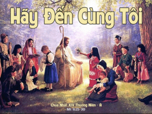 Đoạn Tin Mừng ghi lại lời nguyện của Đức Giêsu dâng lên Chúa Cha, trong tâm tình vui mừng và cảm tạ, vì Cha đã đặc biệt yêu thương những người bé mọn, đơn sơ, và mạc khải cho họ những điều sâu nhiệm. Tiếp đến, Chúa Giêsu mời gọi tất cả những ai vất vả và mang gánh nặng nề, hãy đến với Ngài để tìm sự nghỉ ngơi, bồi dưỡng. Chỉ nơi Chúa, chúng ta mới tìm lại sức mạnh, an vui và thanh thản cho tâm hồn mình. Nhưng để được như vậy, Chúa muốn chúng ta hãy mang lấy “ách” và “gánh” của Ngài, nghĩa là sống theo luật lệ và giáo huấn của Ngài. “Ách” và “gánh” này sẽ êm ái và nhẹ nhàng hơn, khi chúng ta biết học nơi Ngài sự hiền lành và khiêm nhường, là những đức tính của lòng yêu mến sâu xa.