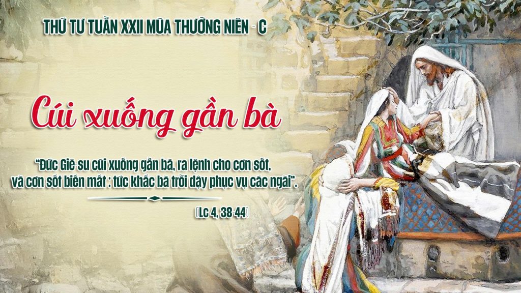 38 Khi ấy, Đức Giê-su rời khỏi hội đường, đi vào nhà ông Si-môn. Bấy giờ, bà mẹ vợ ông Si-môn đang bị sốt nặng. Họ xin Người chữa bà. 39 Đức Giê-su cúi xuống gần bà, ra lệnh cho cơn sốt, và cơn sốt biến mất : tức khắc bà trỗi dậy phục vụ các ngài.