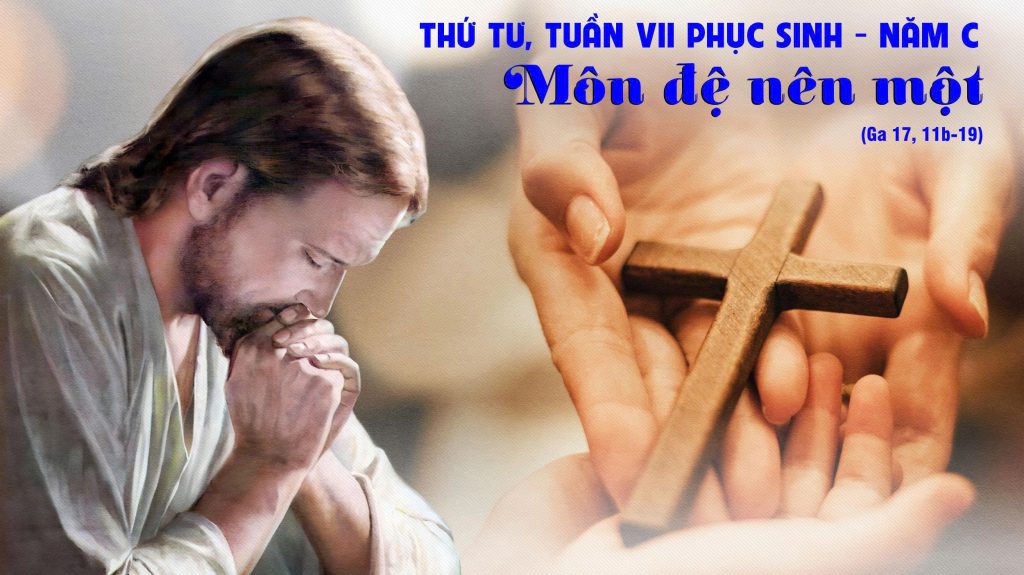 11b Khi ấy, Đức Giê-su ngước mắt lên trời và cầu nguyện rằng : “Lạy Cha chí thánh, xin gìn giữ các môn đệ trong danh Cha mà Cha đã ban cho con, để họ nên một như chúng ta. 12 Khi còn ở với họ, con đã gìn giữ họ trong danh Cha mà Cha đã ban cho con. Con đã canh giữ, và không một ai trong họ phải hư mất, trừ đứa con hư hỏng, để ứng nghiệm lời Kinh Thánh. 13 Bây giờ, con đến cùng Cha, và con nói những điều này lúc còn ở thế gian, để họ được hưởng trọn vẹn niềm vui của con. 14 Con đã truyền lại cho họ lời của Cha, và thế gian đã ghét họ, vì họ không thuộc về thế gian, cũng như con đây không thuộc về thế gian. 15 Con không xin Cha cất họ khỏi thế gian, nhưng xin Cha gìn giữ họ khỏi ác thần. 16 Họ không thuộc về thế gian cũng như con đây không thuộc về thế gian. 17 Xin Cha lấy sự thật mà thánh hiến họ. Lời Cha là sự thật. 18 Như Cha đã sai con đến thế gian, thì con cũng sai họ đến thế gian. 19 Vì họ, con xin thánh hiến chính mình con, để nhờ sự thật, họ cũng được thánh hiến.”