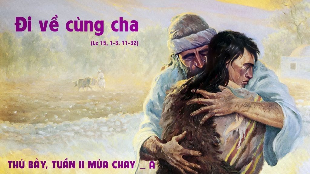 “Anh ta còn ở đằng xa, thì người cha đã trông thấy. Ông chạnh lòng thương, chạy ra ôm cổ anh ta và hôn lấy hôn để. 21 Bấy giờ người con nói rằng : ‘Thưa cha, con thật đắc tội với Trời và với cha, chẳng còn đáng gọi là con cha nữa …’ 22 Nhưng người cha liền bảo các đầy tớ rằng : ‘Mau đem áo đẹp nhất ra đây mặc cho cậu, xỏ nhẫn vào ngón tay, xỏ dép vào chân cậu, 23 rồi đi bắt con bê đã vỗ béo làm thịt để chúng ta mở tiệc ăn mừng ! 24 Vì con ta đây đã chết mà nay sống lại, đã mất mà nay lại tìm thấy.’ Và họ bắt đầu ăn mừng.