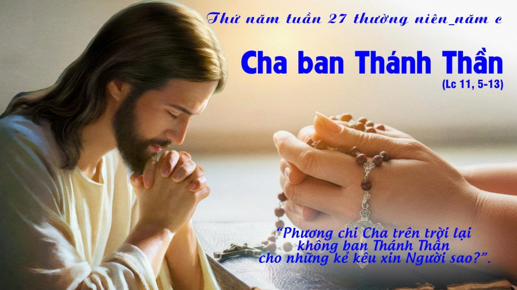 Thánh Luca giải thích rằng năng lực cầu nguyện của chúng ta đến từ Chúa Thánh Thần: “Nếu anh em vốn là những kẻ xấu mà còn biết cho con cái mình của tốt của lành, phương chi Cha trên trời lại không ban Thánh Thần cho những kẻ kêu xin Người sao?” (Lc 11:13) và khuyến khích chúng ta cầu nguyện cùng Thiên Chúa, vì “hễ ai xin thì nhận được, ai tìm thì thấy, ai gõ cửa thì sẽ mở cho” (Lc 11:10) như Thánh Phao-lô đã từng nói: “Chính Thần Khí cầu thay nguyện giúp chúng ta bằng những tiếng rên xiết khôn tả ” (Rm 8:26).