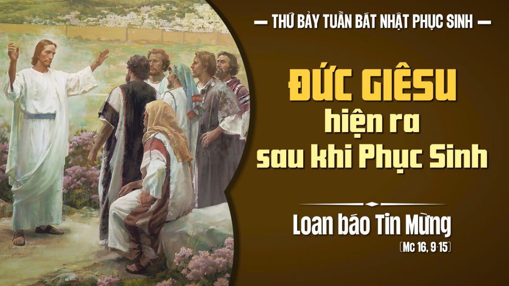 Đoạn Tin Mừng Mác-cô hôm nay tường thuật lại cho chúng ta nghe ba lần Chúa Phục Sinh hiện ra với những người thân tín của Người: thứ nhất, Người hiện ra với chị Maria Mác-đa-la; thứ hai, Người hiện ra với hai môn đệ đang trên đường về quê (thánh Mác-cô nói vắn gọn chỉ một câu, trong khi thánh Luca kể lại bằng một đoạn văn chi tiết về địa điểm (Emmaus), con người (một người tên là Cleopas, còn người kia tên gì chẳng ai biết, rất có thể là chính tác giả) và sự kiện về biến cố này); và thứ ba, Người hiện ra với Nhóm Mười Một (không còn là Nhóm Mười Hai vì Giu-đa Ít-ca-ri-ốt đã thắt cổ tự vẫn).