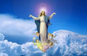 Lời Chúa trong sách Sử Biên Niên quyển thứ nhất mô tả cảnh “con cái Lêvi rước hòm bia Thiên Chúa với nhạc khí râm ran, vừa đi vừa hát hòa điệu với đàn sắt, đàn cầm, và não bạt, tấu lên những hân hoan” (1Sb 15, 3-4. 15-16; 16, 1-2) làm chúng ta nhớ đến biến cố Mẹ về Trời như lời ca của Triệu Hà diễn tả: “Mẹ lên trời giữa một ngày rực ánh sáng. Đàn ca các Thánh tung hô! Nhân loại vui hát mừng vì xác hồn vẹn tuyền Mẹ về thiên cung. Mẹ lên trời ngày mừng vui cho thiên quốc. Hào quang Mẹ Chúa Ba Ngôi. Sáng ngời khắp chín tầng vì xác hồn vẹn tuyền Mẹ tới thiên đường”. Ngày khiêng hòm bia dân chúng rỗn rã tung hô. Ngày Mẹ được rước lên Trời chín tầng mây thắp sáng, các Thánh tung hô, nhân loại hát mừng, triều thần thiên quốc và trái đất mừng vui, đúng là ngày trời đất hân hoan.