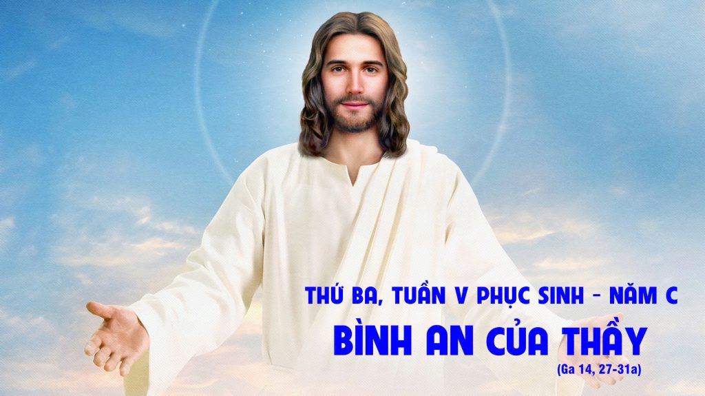 27 Khi ấy, Đức Giê-su nói với các môn đệ rằng : “Thầy để lại bình an cho anh em, Thầy ban cho anh em bình an của Thầy. Thầy ban cho anh em không theo kiểu thế gian. Anh em đừng xao xuyến cũng đừng sợ hãi. 28 Anh em đã nghe Thầy bảo : ‘Thầy ra đi và đến cùng anh em’. Nếu anh em yêu mến Thầy, thì hẳn anh em đã vui mừng vì Thầy đi về cùng Chúa Cha, bởi vì Chúa Cha cao trọng hơn Thầy. 29 Bây giờ, Thầy nói với anh em trước khi sự việc xảy ra, để khi xảy ra, anh em tin.