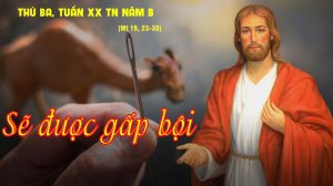 23 Khi ấy, Đức Giê-su nói với các môn đệ rằng : “Thầy bảo thật anh em, người giàu có khó vào Nước Trời. 24 Thầy còn nói cho anh em biết : con lạc đà chui qua lỗ kim còn dễ hơn người giàu vào Nước Thiên Chúa.” 25 Nghe nói vậy, các môn đệ vô cùng sửng sốt và nói : “Thế thì ai có thể được cứu ?” 26 Đức Giê-su nhìn thẳng vào các ông và nói : “Đối với loài người thì điều đó không thể được, nhưng đối với Thiên Chúa, thì mọi sự đều có thể được.”