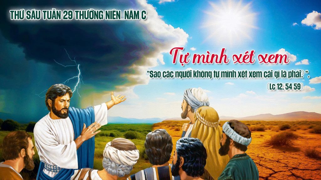 54 Khi ấy, Đức Giê-su nói với đám đông rằng : “Khi các người thấy mây kéo lên ở phía tây, các người nói ngay : ‘Mưa đến nơi rồi’, và xảy ra đúng như vậy. 55 Khi thấy gió nồm thổi, các người nói : ‘Trời sẽ oi bức’, và xảy ra đúng như vậy. 56 Những kẻ đạo đức giả kia, cảnh sắc đất trời, thì các người biết nhận xét, còn thời đại này, sao các người lại không biết nhận xét ?