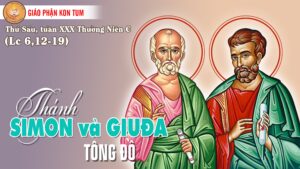 Cầu nguyện: Lạy Chúa Giêsu, hôm nay chúng con mừng kính hai thánh tông đồ Simon và Giuđa. Cuộc sống chứng nhân của các Ngài đáng ngưỡng mộ và là những tấm gương sáng cho mỗi tín hữu chúng con. Trong danh sách mười hai tông đồ, con thấy có người chối Chúa, có kẻ bán Chúa. Điều này chứng tỏ Chúa không chỉ chọn lựa những người đã hoàn toàn thánh, nhưng Chúa chọn lựa là để mời gọi các Ngài trở nên thánh thiện.