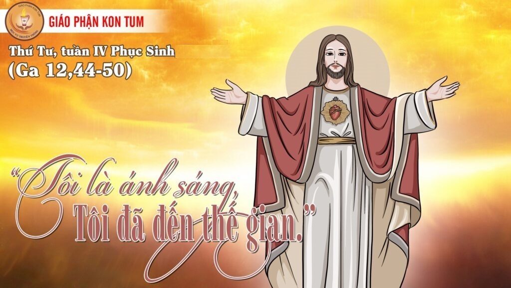 44 Khi ấy, Đức Giê-su lớn tiếng nói rằng : “Ai tin vào tôi, thì không phải là tin vào tôi, nhưng là tin vào Đấng đã sai tôi ; 45 ai thấy tôi là thấy Đấng đã sai tôi. 46 Tôi là ánh sáng, tôi đã đến thế gian, để bất cứ ai tin vào tôi, thì không ở lại trong bóng tối. 47 Ai nghe những lời tôi nói mà không tuân giữ, thì không phải chính tôi xét xử người ấy, vì tôi đến không phải để xét xử thế gian, nhưng để cứu thế gian. 48 Ai từ chối tôi và không đón nhận lời tôi, thì có quan toà xét xử người ấy : chính lời tôi đã nói sẽ xét xử người ấy trong ngày sau hết. 49 Thật vậy, không phải tôi tự mình nói ra, nhưng là chính Chúa Cha, Đấng đã sai tôi, truyền lệnh cho tôi phải nói gì, tuyên bố gì. 50 Và tôi biết : mệnh lệnh của Người là sự sống đời đời. Vậy, những gì tôi nói, thì tôi nói đúng như Chúa Cha đã nói với tôi.”