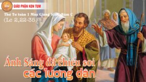 – Cụ già Simêon xin được bồng Chúa Hài Nhi, cụ vui mừng đến nỗi không muốn sống ở trần gian nữa. Cụ lớn tiếng ca tụng Chúa và nói cho mọi người biết: “Hài Nhi chính là Đấng Cứu Độ muôn dân, là Ánh Sáng soi đường cho dân ngoại và là Vinh quang của Israel dân Chúa”. Cụ cũng báo trước cho Đức Mẹ và Thánh Giuse về Cuộc Thương Khó của Chúa Giêsu và nỗi dau của Mẹ bên nỗi đau của Con (Đức Mẹ ghi nhớ và suy niệm trong lòng).