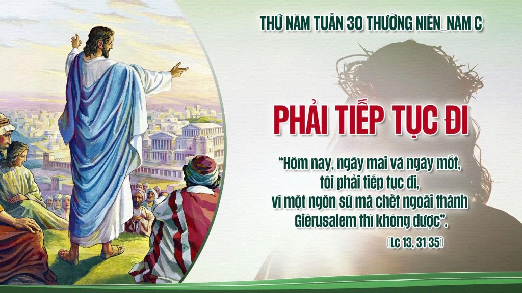 “Hôm nay và ngày mai tôi trừ quỷ và chữa lành bệnh tật, ngày thứ ba tôi hoàn tất. Tuy nhiên, hôm nay, ngày mai và ngày mốt, tôi phải tiếp tục đi, vì một ngôn sứ mà chết ngoài thành Giê-ru-sa-lem thì không được” (Lc 13:32-33).