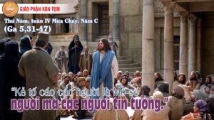 Khi ấy, Chúa Giêsu nói với dân Do-thái rằng: “Nếu chính Ta làm chứng về Mình, thì chứng của Ta sẽ không xác thực. Có một Đấng khác làm chứng về Ta, và Ta biết chứng Người làm về Ta thì xác thực. Các ngươi đã sai người đi hỏi Gioan, và Gioan đã làm chứng cho sự thật. Phần Ta, Ta không cần chứng của loài người, nhưng Ta nói những điều này để các ngươi được cứu thoát. Gioan là cây đèn cháy sáng. Các ngươi cũng muốn vui hưởng ánh sáng đó một thời gian. Nhưng Ta có một bằng chứng hơn chứng của Gioan: vì công việc Chúa Cha đã giao cho Ta hoàn thành, là chính công việc Ta đang làm. Các việc đó làm chứng về Ta rằng Chúa Cha đã sai Ta. Và Chúa Cha, Đấng đã sai Ta, chính Người cũng làm chứng về Ta. Nhưng chưa bao giờ các ngươi được nghe tiếng Người, chưa bao giờ nhìn thấy mặt Người, và lời Người, các ngươi cũng chẳng giữ lại được, vì các ngươi không tin Đấng Người đã sai đến. Các ngươi tra cứu Sách Thánh, vì tưởng rằng trong đó các ngươi sẽ tìm thấy sự sống muôn đời; chính Sách Thánh lại làm chứng về Ta, vậy mà các ngươi vẫn không chịu đến với Ta để được sống. Ta không tìm vinh quang nơi loài người. Nhưng Ta biết các ngươi không có lòng yêu mến Thiên Chúa. Ta đến nhân danh Chúa Cha, nhưng các ngươi không chịu đón nhận. Nếu có một người nào khác nhân danh mình mà đến, các ngươi sẽ đón nhận nó. Các ngươi là những người nhận vinh quang lẫn nhau mà không tìm vinh quang do một Thiên Chúa, thì làm sao các ngươi có thể tin được? Các ngươi đừng tưởng rằng Ta sẽ tố cáo các ngươi với Chúa Cha. Kẻ tố cáo các ngươi là Môsê, tức là người mà các ngươi vẫn tin tưởng. Vì nếu các ngươi tin Môsê, thì có lẽ các ngươi cũng đã tin Ta, bởi vì chính Môsê đã viết về Ta. Nhưng mà nếu các ngươi không tin điều Môsê đã viết, thì làm sao các ngươi tin lời Ta được?”