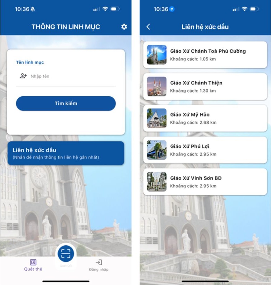 Ngoài các chức năng xác minh danh tính, ứng dụng còn tích hợp một tính năng mục vụ rất thiết thực: Liên hệ xức dầu. Khi người thân lâm nguy, giáo dân có thể sử dụng chức năng này để nhanh chóng kết nối với các linh mục ở gần nhất trong khu vực, giúp bệnh nhân kịp thời lãnh nhận Bí tích Xức dầu bệnh nhân. Tính năng này không chỉ thể hiện chiều sâu mục vụ, mà còn mang lại sự hiện diện sống động của Giáo hội trong những thời khắc quan trọng của đời sống đức tin.