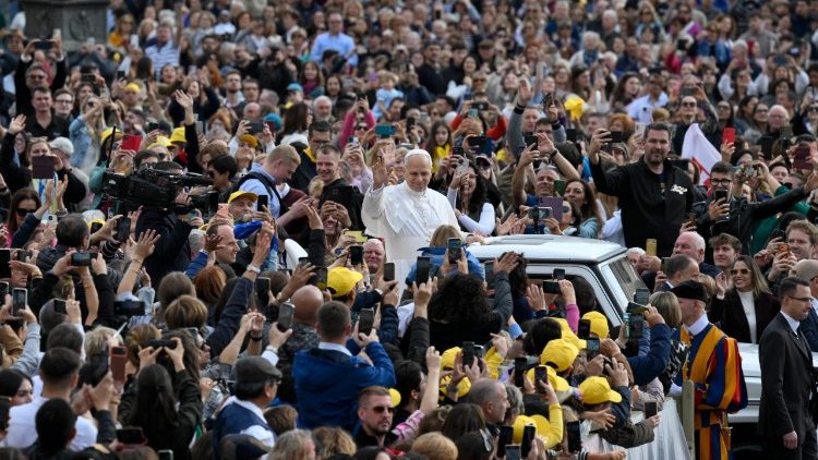 Anh chị em đã đến đích của cuộc hành hương, nhưng, giống như các môn đệ của Đức Giêsu, giờ đây chúng ta cần học cách sống trong một thế giới mới. Năm Thánh đã giúp chúng ta trở thành những người hành hương hy vọng chính vì điều này: từ nay, mọi sự phải được nhìn dưới ánh sáng của sự phục sinh của Đấng Chịu Đóng Đinh. Chính trong niềm hy vọng ấy mà chúng ta được cứu độ! Tuy nhiên, đôi mắt của chúng ta chưa quen. Vì thế, trước khi lên trời, Đấng Phục Sinh đã bắt đầu giáo dục ánh nhìn của chúng ta. Và Người vẫn tiếp tục làm điều đó ngay cả ngày nay! Thực vậy, sự vật không như chúng ta tưởng: tình yêu đã chiến thắng, mặc dù trước mắt ta vẫn còn biết bao mâu thuẫn và chúng ta thấy sự xung đột giữa nhiều điều đối nghịch.