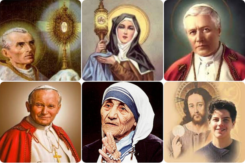 Trong suốt 2.000 năm lịch sử Giáo hội, các tín hữu Công giáo luôn thể hiện lòng yêu mến, tin thờ Chúa Kitô ngự trong Bí tích Thánh Thể. Trong đó, các Thánh luôn là những người có lòng yêu mến Thánh Thể cao độ, và không ít vị hằng tha thiết và nhiệt tâm rao truyền về Bí tích Cực trọng này. Chúng ta có thể kể tên một vài vị Thánh gần gũi với chúng ta ngày nay.