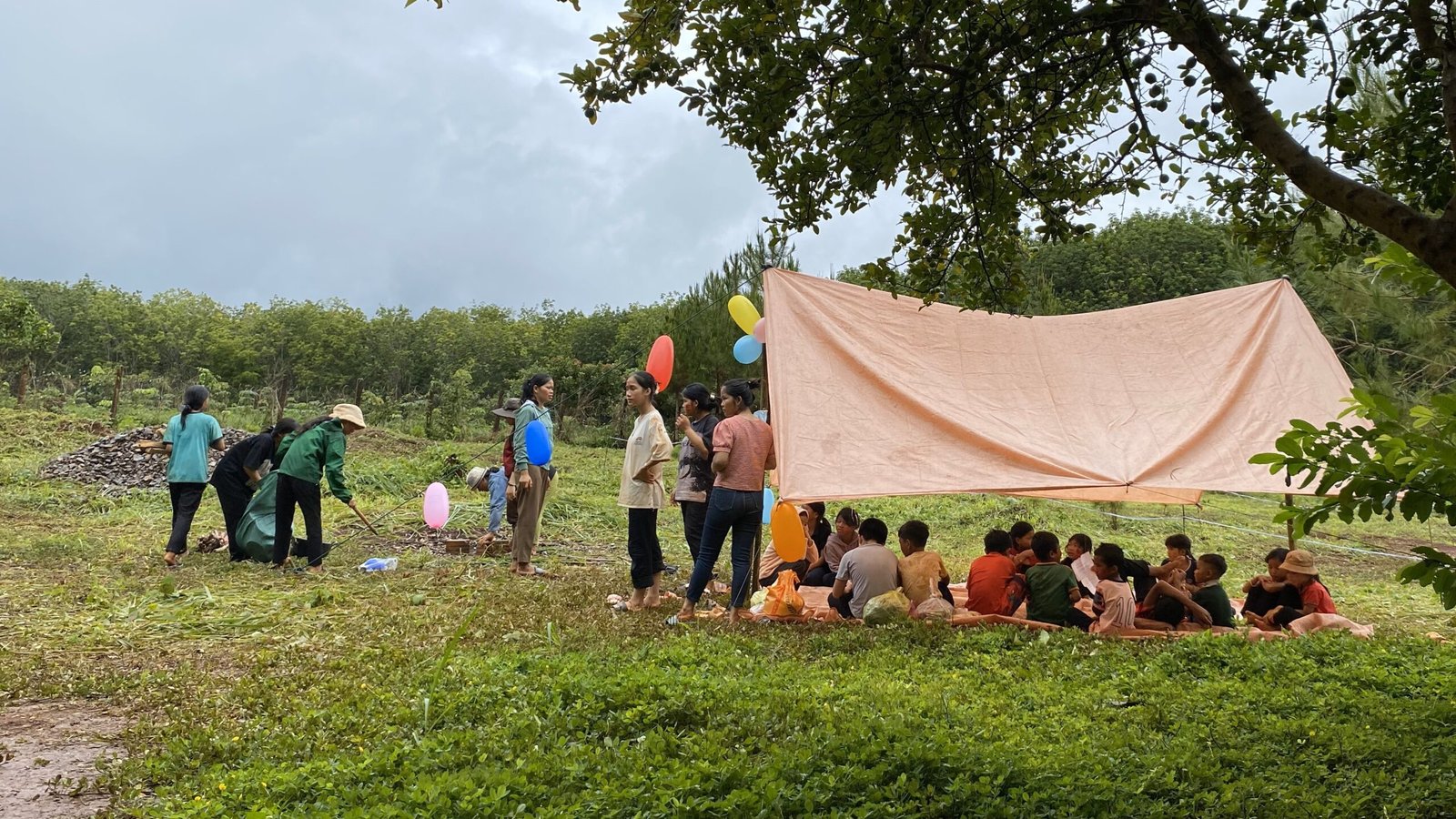 Hiện diện trong ngày trại có Cha Phi-líp-phê Đỗ Đức Hoan, SDB – Chánh xứ Giáo xứ Plơi Ia Ba, ngoài ra còn có quý anh chị huynh trưởng – giáo lý viên của giáo xứ, quý phụ huynh và gần 200 em thiếu nhi người dân tộc Jarai. Sau khi tham dự Thánh lễ lúc 6h, các em thiếu nhi đã tập trung tại dãy các lớp học để điểm danh và chuẩn bị khai mạc ngày trại. Đúng 7h30, ngày trại được bắt đầu với bài nhảy chủ đề “Lên chốn cao hơn”. Các em thiếu nhi đã cùng nhau giải mật thư và tham gia các trò chơi trên đường đi từ giáo xứ đến khu nhà nấm (khu đất của nhà dòng dùng để trồng nấm và có sân bóng đá). Vào khoảng 9h, chương trình được tiếp tục với việc dựng lều trại và thi nấu cơm. Tuy trời mưa liên tục nhưng nhờ có sự trợ giúp của các anh chị giáo lý viên và quý phụ huynh, các em đã có thể nấu những bữa cơm thật ngon.