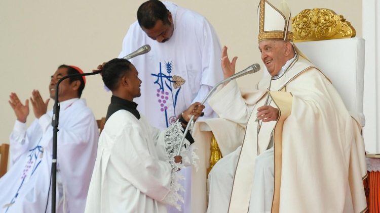 Trong bài giảng Thánh lễ tại Khu vực Taci Tolu vào sáng thứ Ba ngày 10/9/2024, Đức Thánh Cha nói rằng khi dành chỗ cho những kẻ bé mọn, chào đón họ, chăm sóc họ và tất cả chúng ta trở nên nhỏ bé trước mặt Thiên Chúa và trước mặt nhau, chính là chúng ta mở lòng ra với hành động của Chúa”. Ngài mời gọi họ đừng sợ mất đi mạng sống, hiến tặng thời gian, nhưng theo gương Mẹ Maria, trở nên ngày càng nhỏ bé hơn bằng cách phục vụ, cầu nguyện, nhường chỗ cho Chúa Giêsu.