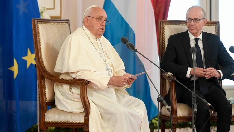 Trong buổi gặp chính quyền, xã hội dân sự và ngoại giao đoàn Luxembourg, Đức Thánh Cha tập trung vào những điểm: Thay thế chống đối bằng sự hợp tác, sẽ có kỷ nguyên hòa bình mới; Kiên nhẫn xây dựng các thể chế và luật pháp khôn ngoan là điều quan trọng của một đất nước; Phát triển xác thực và toàn diện bao gồm cả chăm sóc thụ tạo và tình huynh đệ; và Tin Mừng là nguồn sống và là sức mạnh luôn tươi mới của sự đổi mới cá nhân và xã hội.