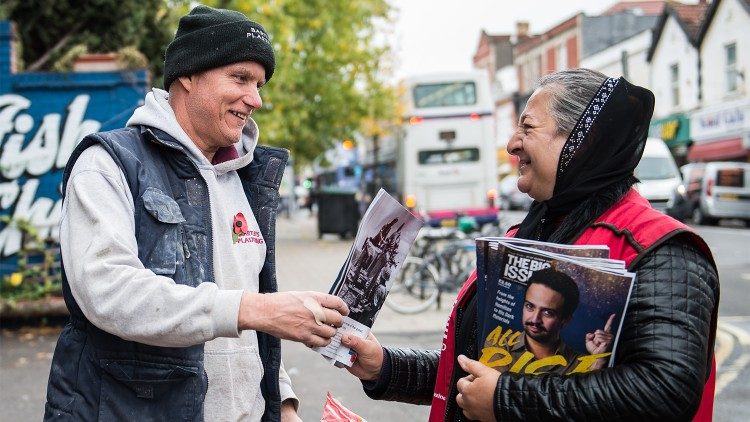 Đức Thánh Cha nhìn nhận thế giới của báo đường phố, và đặc biệt là những người bán báo này, phần lớn là những người vô gia cư, người bị gạt ra bên lề, những người thất nghiệp. Ngài nói: “Hàng ngàn người trên khắp thế giới sống và có việc làm nhờ bán những tờ báo đặc biệt này.”
