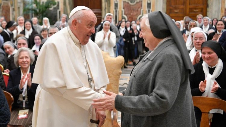 Trưa thứ Năm ngày 13/4/2023, ngỏ lời với các Bề trên Tổng quyền các dòng nữ của Ý nhân dịp Đại hội đồng lần thứ 70 của tổ chức, gọi tắt là USMI, Đức Thánh Cha mời gọi các nữ tu vượt qua những thách đố như số ơn gọi ít, tính đa văn hóa của các cộng đoàn, vấn đề công việc, và hãy trung thành với ơn gọi vì Chúa là Đấng trung tín.