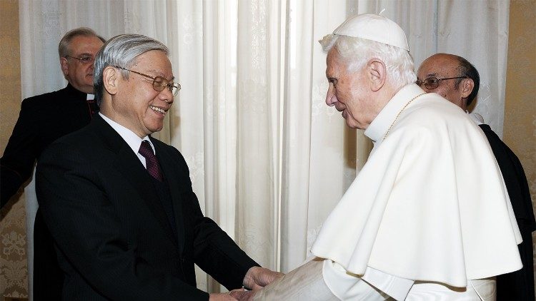 Được tin Ngài Nguyễn Phú Trọng, Tổng bí thư Đảng Cộng sản và nguyên Chủ tịch Nước Cộng hoà Xã hội Chủ nghĩa Việt Nam từ trần, Đức Giáo Hoàng Phanxicô gửi lời chia buồn đến tất cả những ai thương khóc về sự ra đi của Ngài Tổng Bí thư, đặc biệt với tang quyến, cùng bảo đảm với lời cầu nguyện của Đức Giáo Hoàng để họ được an ủi và bình an. Với sự đánh giá cao cách đặc biệt về vai trò của Ngài Tổng Bí thư trong việc thúc đẩy và tăng cường phát triển tích cực đối với mối quan hệ giữa Việt Nam và Tòa Thánh, Đức Giáo Hoàng Phanxicô mong ước gởi sự gần gũi tinh thần đến Ngài và toàn thể người dân của Ngài trong thời điểm đau buồn này của đất nước.