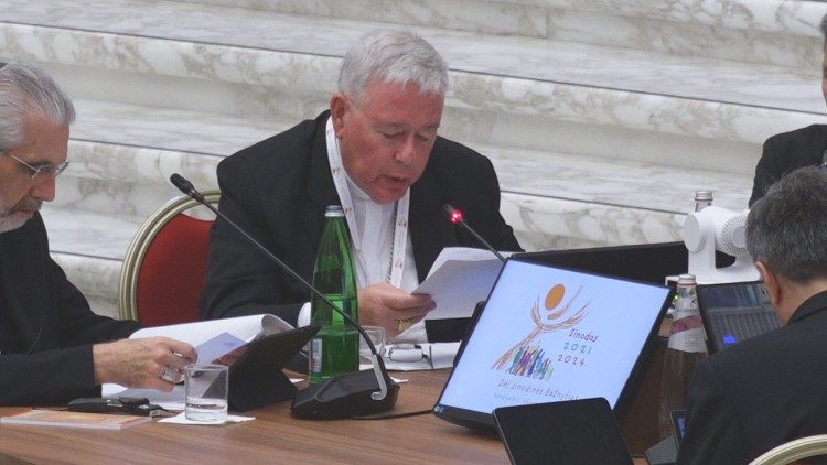 Việc trình bày phần này được giao cho Đức cha Hollerich. Đức Hồng y được giới thiệu bởi Đức Hồng y tổng thư ký Mario Grech, người đã thông báo sự vắng mặt của 4 tham dự viên vì họ có kết quả xét nghiệm dương tính với Covid-19. “Sau khi nghe lời khuyên của bác sĩ, không có gì đáng báo động”, ngài trấn an và đồng thời mời gọi “các biện pháp thận trọng” như đeo khẩu trang và khử trùng tay. “Không có Covid” đối với Đức Giáo hoàng, người đã tham dự Đại hội đồng sáng nay: điều này đã được tuyên bố bởi Giám đốc Văn phòng Báo chí của Vatican, Matteo Bruni, người giải thích rằng Đức Giáo hoàng đã bỏ phiên họp vào phút cuối do “những công việc bất ngờ”.