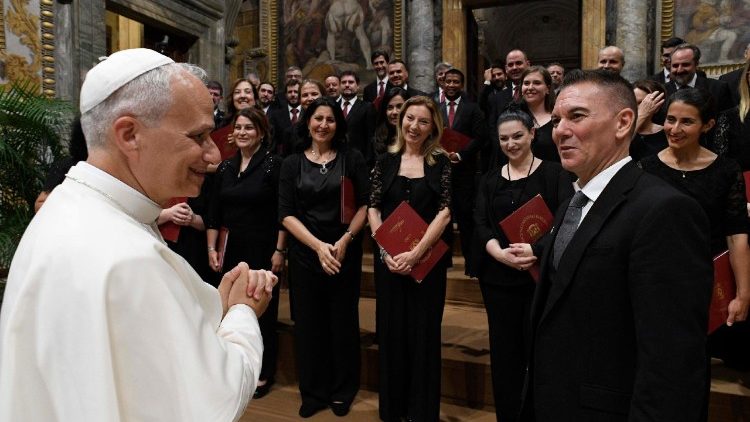 Vatican News (19.06.2025) – Chiều ngày 18/6/2025, Đức Thánh Cha Lêô XIV tiếp các thành viên Quỹ Domenico Bartolucci và đoàn hợp xướng nhân dịp kỷ niệm 500 năm ngày sinh của nhà soạn nhạc và nghệ sĩ organ vĩ đại Giovanni Pierluigi da Palestrina. Ngài nhắc lại rằng, thánh nhạc không chỉ là một di sản của quá khứ nhưng là một món quà sống động vẫn đang tiếp tục nuôi dưỡng Giáo hội hôm nay.