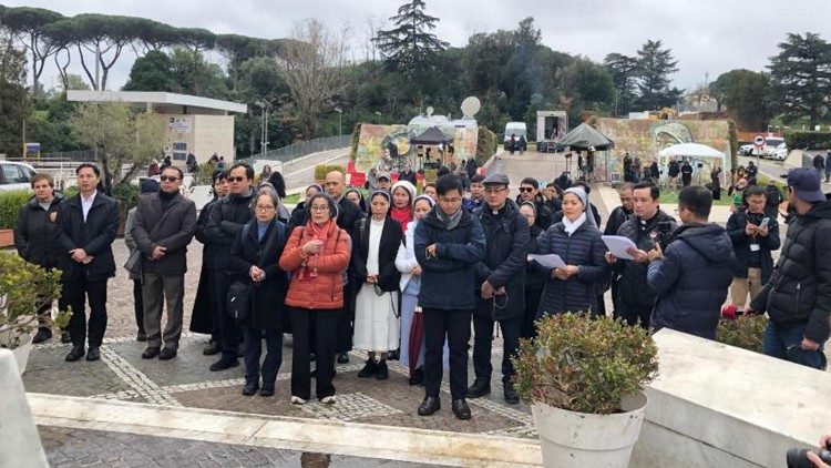 Vào lúc 12 giờ 30 trưa thứ Ba ngày 25/2/2025, cộng đoàn liên tu sĩ Việt Nam tại Roma và một số anh chị em giáo dân Việt Nam đã quy tụ tại sân bệnh viện Công giáo Gemelli ở Roma để cầu nguyện cho Đức Thánh Cha.