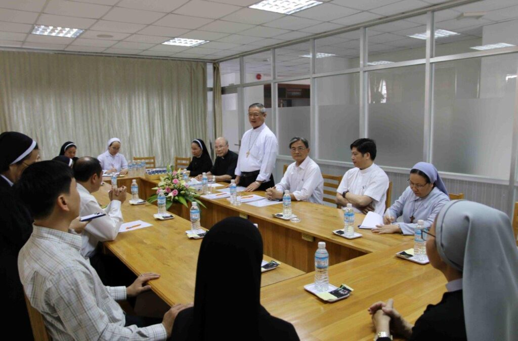Nghi thức bàn giao kết thúc bằng lời kinh tạ ơn Chúa tại nhà nguyện của văn phòng Caritas VN với sự hiện diện của một số khách mời, đại diện văn phòng Caritas Sài Gòn và nhân viên văn phòng Caritas Việt Nam.