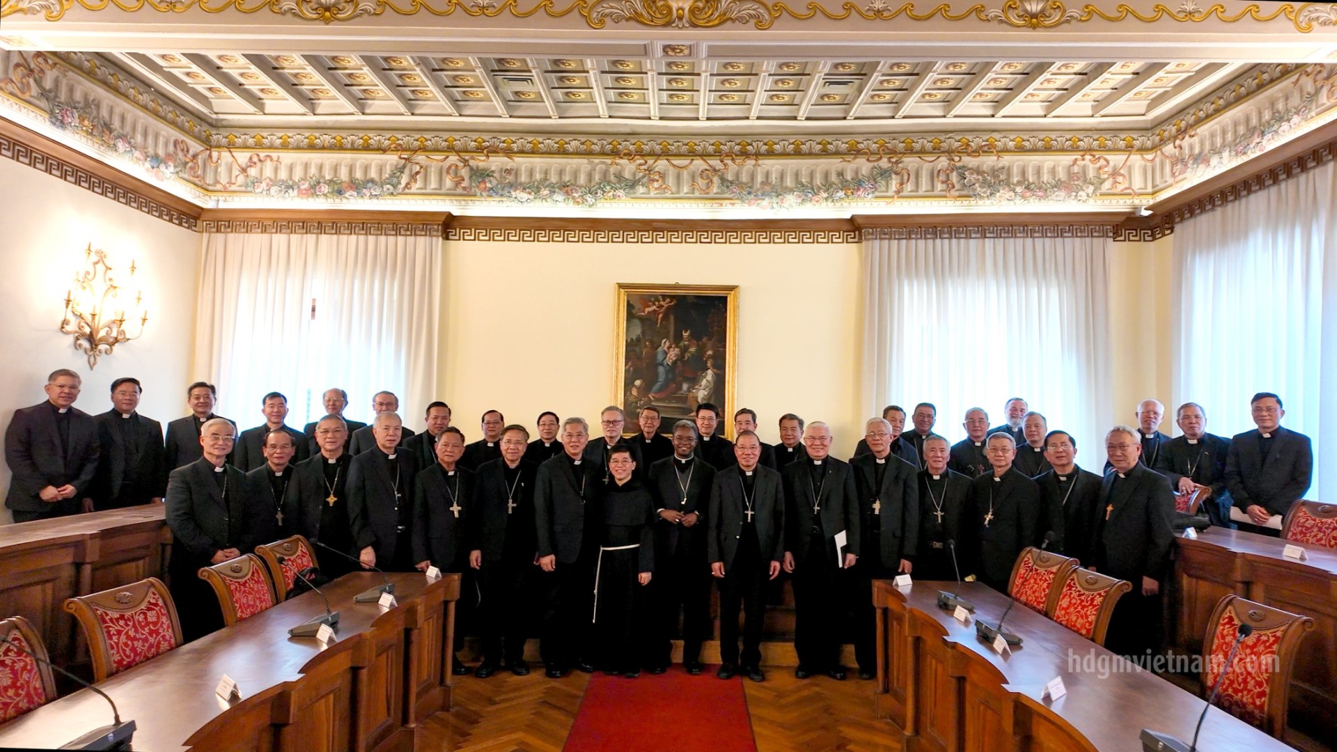 Cũng trong buổi sáng, phái đoàn đã có cuộc gặp gỡ quan trọng và thân tình với Bộ Truyền giáo. Đức Tổng Giám mục Giuse Nguyễn Năng, Chủ tịch HĐGMVN, gửi lời chào thăm Đức Tổng Giám mục Fortunatus Nwachukwu, Tổng Thư Ký, cùng quý thành viên của Bộ. Sau đó, Ngài báo cáo tổng quan về đời sống Giáo hội Công giáo tại Việt Nam – với số tín hữu chiếm khoảng 7,3% dân số, thuộc 27 giáo phận, trong đó có một giáo phận đang trống toà.