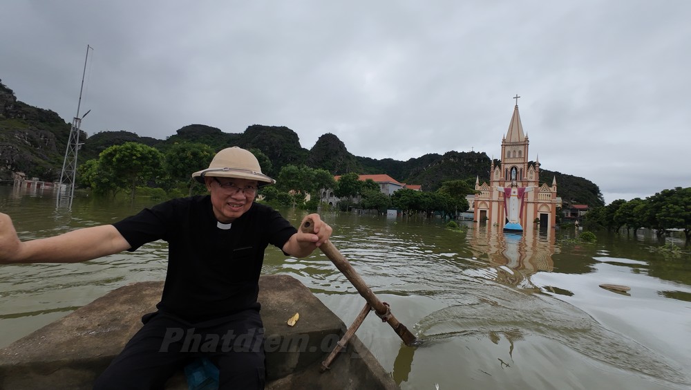 Cách chung, quý cha xứ nơi đây nhận thấy tình hình lũ lụt năm nay đến khá bất ngờ so với các năm trước. Mực nước dâng cao chỉ kém một chút so với trận lụt lịch sử năm 2017. Do có kinh nghiệm “sống chung với lũ” hàng năm, bà con nơi đây không để xảy ra thiệt hại về nhân mạng, cũng không ảnh hưởng trầm trọng như các tỉnh phía Bắc sau cơn bão Yagi. Tuy nhiên, chỉ cần hình dung một điều đơn gian, những ngày qua hàng ngàn hộ gia đình sống trong trong tình trạng mất điện, thiếu nước sạch, nhà bị ngập lụt từ 50cm đến 2m. Sinh hoạt của anh chị em gặp phiền phức ra sao khi phải chạy đồ, kê đồ lên gác, chạy ở nhờ, nhiều gia đình không có gác cao hoặc nhà tầng, đành phải chịu ngâm đồ đạc trong nước lũ.
