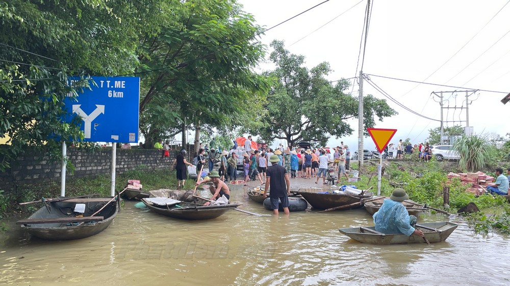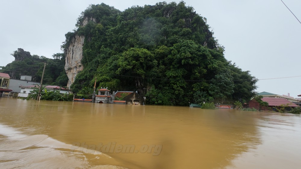Mấy hôm nay lượng mưa đã giảm nhiều, chỉ còn mưa nhẹ, nhưng hầu hết đường tới các giáo xứ này đã chìm trong biển nước. Nhiều chỗ không còn nhận ra đâu là đường, đâu là sông. Cách tiếp cận duy nhất là phải đi bằng thuyền. Khi đang ngồi trên thuyền vào thăm giáo xứ Mỹ Thủy, thôn Kênh Gà, rồi khi chèo thuyền thong dong vào giáo xứ Ngọc Cao nằm sâu trong các dãy núi, chúng tôi cứ ngỡ như đang được du hành trên vịnh Hạ Long. Nếu khu du dịch Tràng An ở Ninh Bình từng được ví như Hạ Long trên cạn, thì phong cảnh mấy giáo xứ vùng lũ này cũng đẹp không kém. Vâng, một khung cảnh núi non trùng trùng điệp điệp hiện ra trước mắt vừa buồn mà đẹp làm sao!