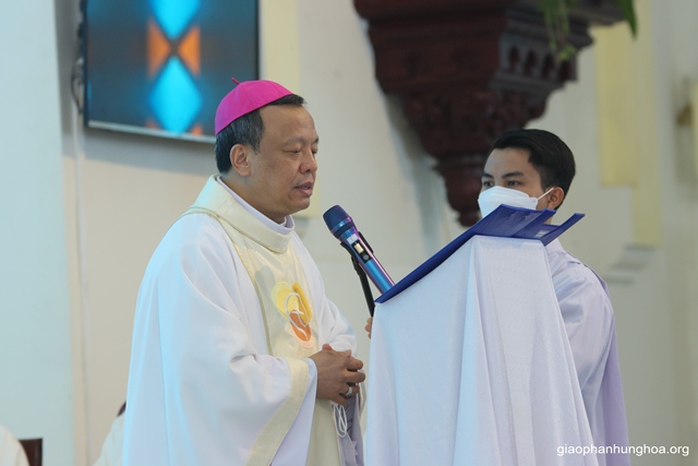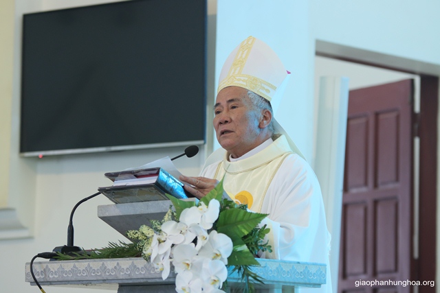 Giảng trong Thánh lễ, khởi đi từ tinh thần “hiệp nhất” và “yêu thương” trong trình thuật Tin Mừng theo thánh Gioan 15, 1 – 10, Đức cha Anphong Nguyễn Hữu Long đã phân tích cho cộng đoàn thấy sự “hiệp nhất” chỉ mối tương giao, gắn kết giữa hai hay nhiều chủ thể khác biệt để làm nên một. Một cơ cấu càng hiệp nhất thì càng chặt chẽ, càng vững bền. Sự hiệp nhất trong Kitô giáo sâu sắc hơn tất cả các sự hiệp nhất ở trần thế này, vì nó bắt nguồn từ sự hợp nhất giữa Ba Ngôi Thiên Chúa, rồi đến sự hiệp nhất của Chúa Ba Ngôi với con người, và cuối cùng là kết nối Kitô hiệp nhất trong Giáo hội Công giáo. Còn “tình yêu” là then chốt trong đời sống cá nhân cũng như đời sống của cộng đoàn. Trong Kitô giáo, tình yêu có giá trị vô song. Bởi vì tình yêu chính là bản chất của Thiên Chúa. Đạo Công giáo là đạo yêu thương. Tin Mừng của Chúa Kitô là Tin mừng của tình yêu, dạy chúng ta phải yêu Chúa, yêu tha nhân và thậm chí là yêu cả kẻ ghét mình. “Hiệp nhất và Yêu thương” là hai yếu tố then chốt để cuộc sống được hài hòa và thăng hoa. Hai yếu tố này luôn song song với nhau và không tách rời. Muốn hiệp nhất phải có yêu thương và ngược lại.