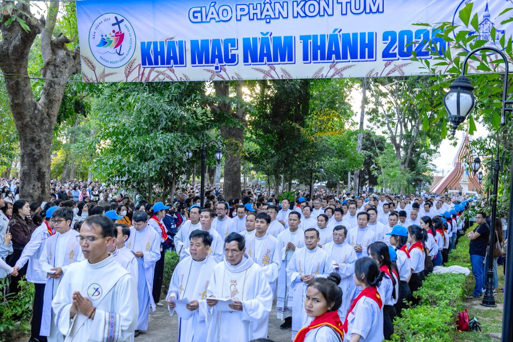 Trong tinh thần hiệp thông với Giáo hội hoàn vũ sống Năm Thánh 2025 – “Những Người Hành Hương của Hy Vọng”, Giáo phận Kon Tum đã khai mạc năm Thánh vào ngày 28/12/2024 và kết thúc vào ngày 27/12/2025 tại Nhà thờ Chính tòa.