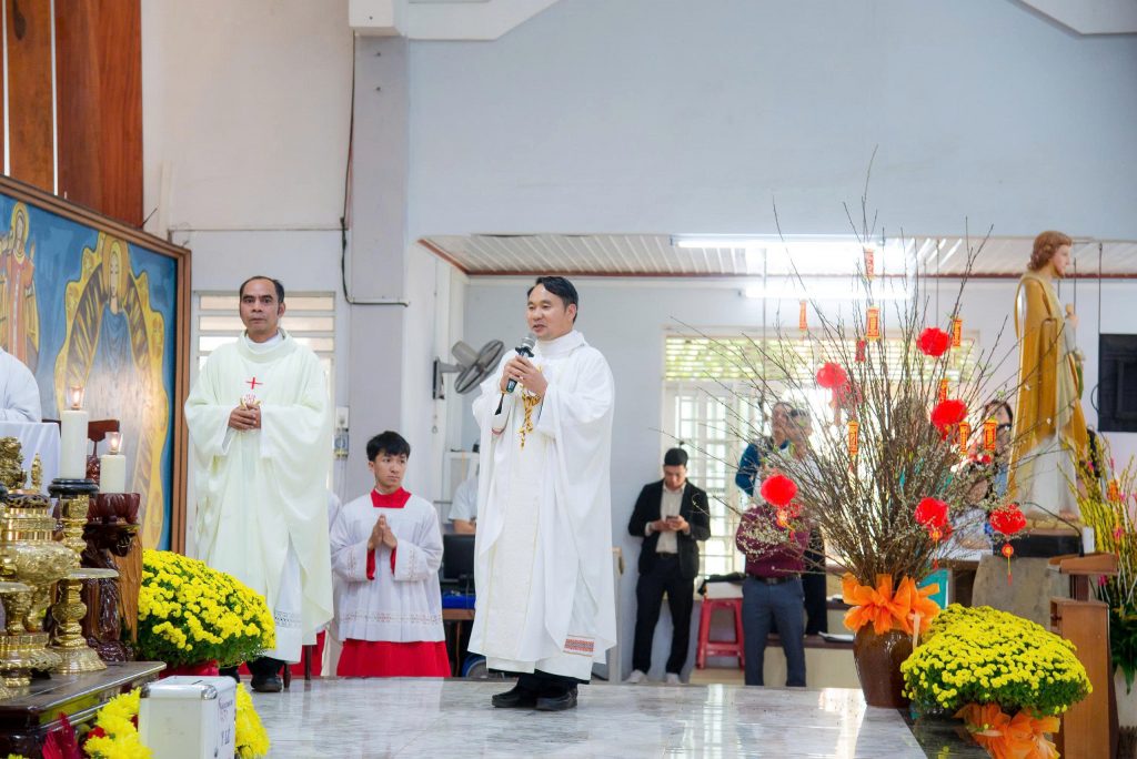 Chiều Mồng Ba Tết, tại Giáo xứ Thánh Tâm, Đức Cha Aloisiô đã chủ sự Thánh lễ Tạ ơn và Thánh hóa công ăn việc làm trong niềm vui hiệp thông của đông đảo cộng đoàn. Trong bài giảng, Đức Cha nêu bật ý nghĩa ba ngày Tết gắn với truyền thống “Tết Cha – Tết Mẹ – Tết Thầy” và triết lý Tam Tài (Thiên – Địa – Nhân). Giáo Hội, qua phụng vụ, đã hội nhập và kiện toàn những giá trị ấy: