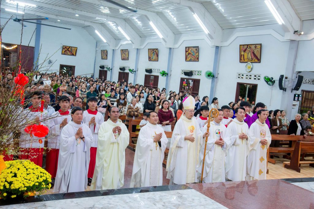 Trong bầu khí linh thiêng và hân hoan của những ngày đầu Xuân Bính Ngọ 2026, Đức Cha Aloisiô Nguyễn Hùng Vị, Giám mục Giáo phận Kon Tum, đã cùng với cộng đoàn dân Chúa tại các giáo xứ và cộng đoàn long trọng cử hành ba Thánh lễ đầu năm. Chuỗi hành trình này mở ra một hướng đi thiêng liêng đầy ý nghĩa: hướng lên Thiên Chúa, trở về với cội nguồn gia đình và dấn thân thánh hóa đời sống lao động.
