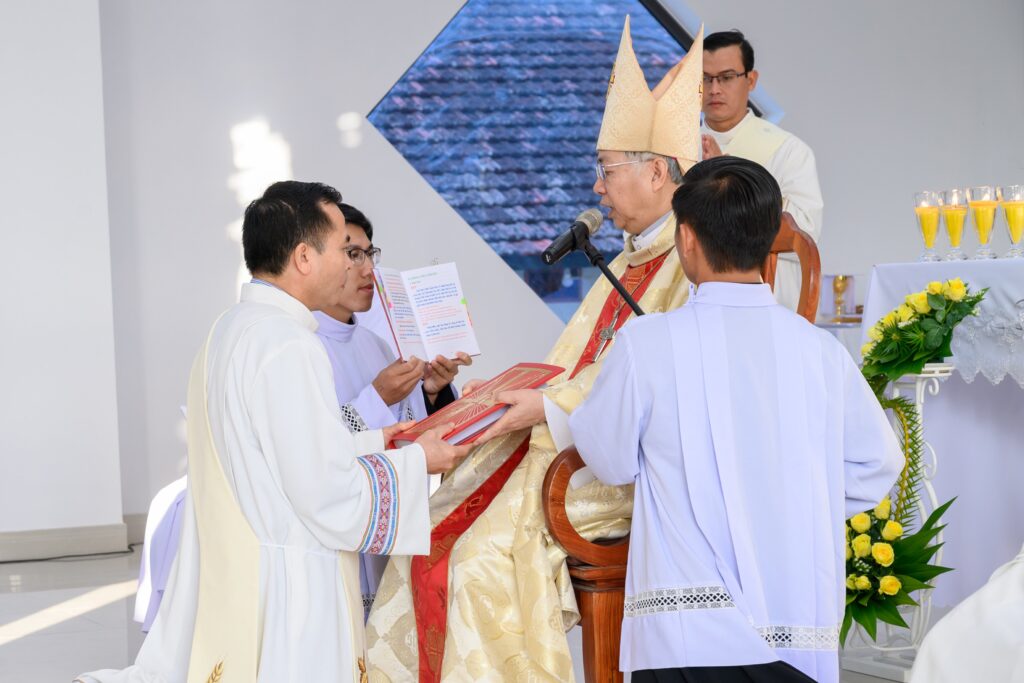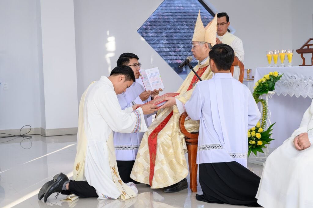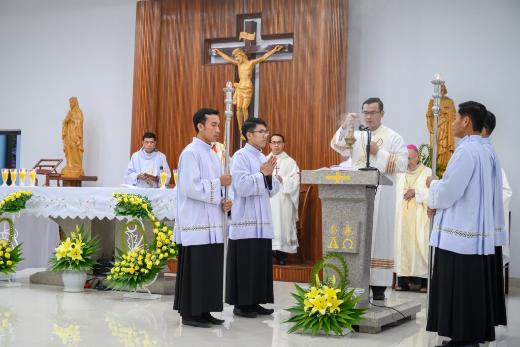 Vào lúc 5g30 sáng hôm nay ngày 03.12.2021, Đức Cha Aloisiô Nguyễn Hùng Vị, Giám mục Giáo phận Kon Tum đã cử hành Thánh lễ trao ban chức Phó tế cho 09 Thầy, và chức Linh mục cho 08 Thầy phó tế (trong đó 06 Thầy phó tế từ Chủng viện Thừa sai Kon Tum, 02 Thầy phó tế thuộc Dòng Mẹ Cứu Chuộc).