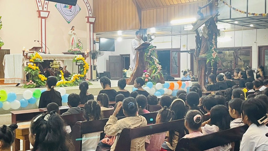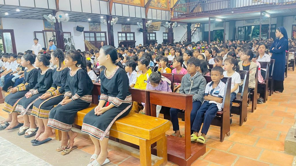 Tối Thứ Hai, ngày 06/10/2025 (nhằm đêm rằm 15/8 âm lịch) – Ngày Trung Thu, ngày cầu nguyện đặc biệt cho thiếu nhi – giáo xứ Kon Rơbang đã hân hoan tổ chức Thánh lễ tạ ơn và đêm văn nghệ mừng Trung Thu, quy tụ đông đảo các em thiếu nhi cùng cộng đoàn dân Chúa trong giáo xứ.