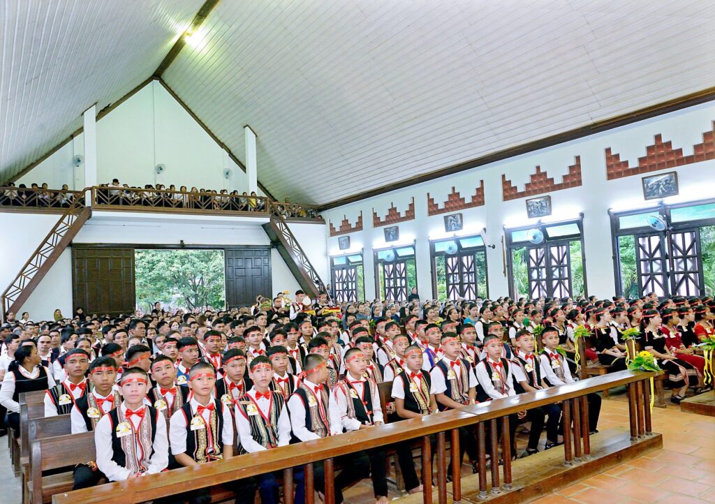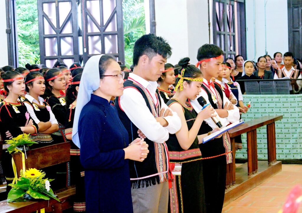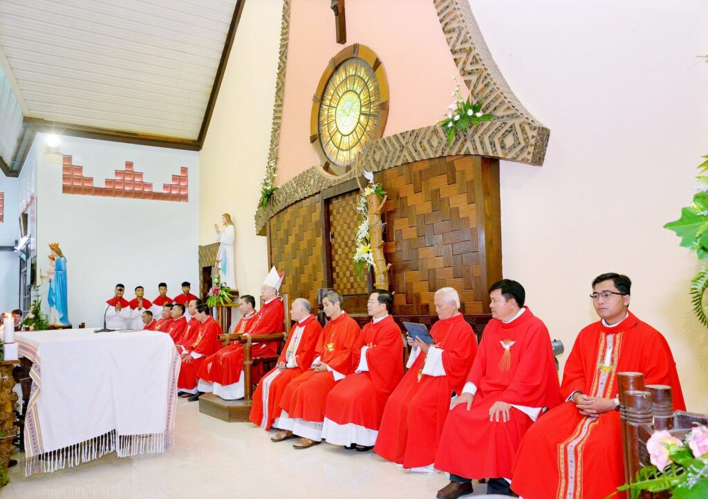 Thánh lễ diễn ra tôn nghiêm, sốt sắng với phụng vụ lễ Chúa Thánh Thần, mang đậm nét truyền thống sắc tộc Bahnar, xen kẽ tiếng Việt.