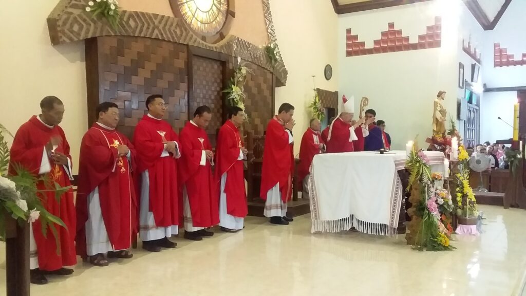 Thánh lễ do Đức Cha Aloisiô Nguyễn Hùng Vị – Giám mục giáo phận Kon Tum chủ tế; cha Tổng đại diện Giuse Đỗ Hiệu và một số quý cha trong giáo phận đồng tế. Đặc biệt có sự hiện diện của cha chính xứ đương nhiệm Gioakim Nguyễn Hữu Tuyến và 2 cha nguyên chính xứ: Phaolô Nguyễn Đức Hữu và Gioan Nguyễn Đức Trường.