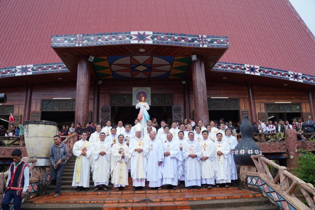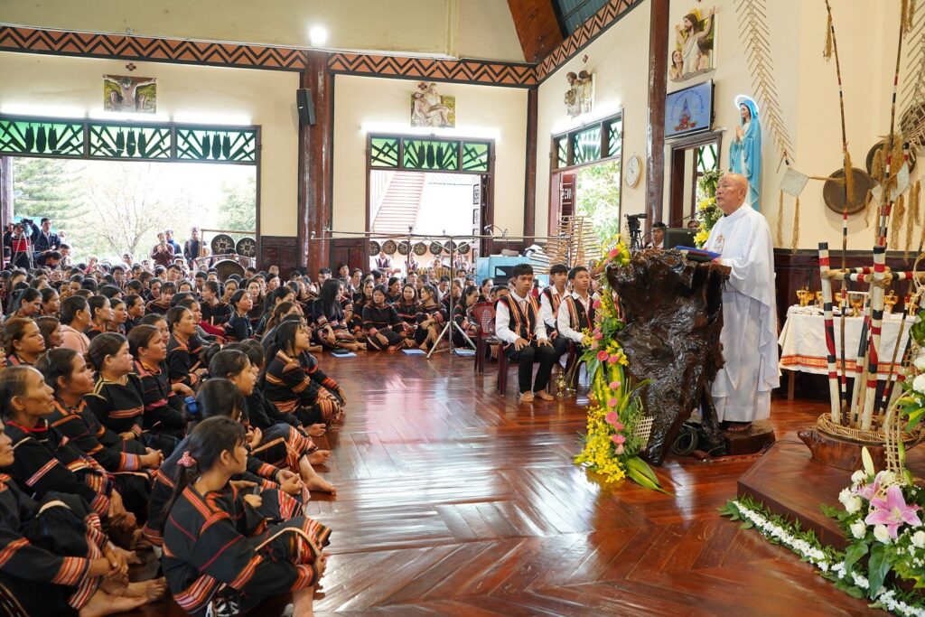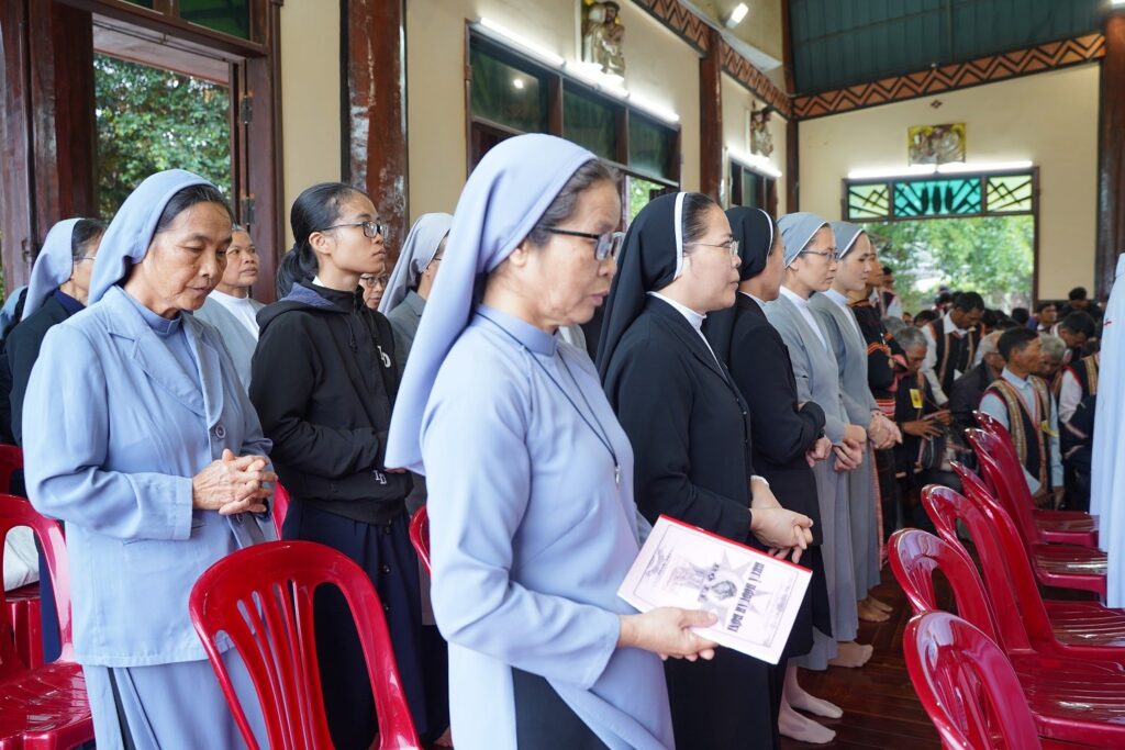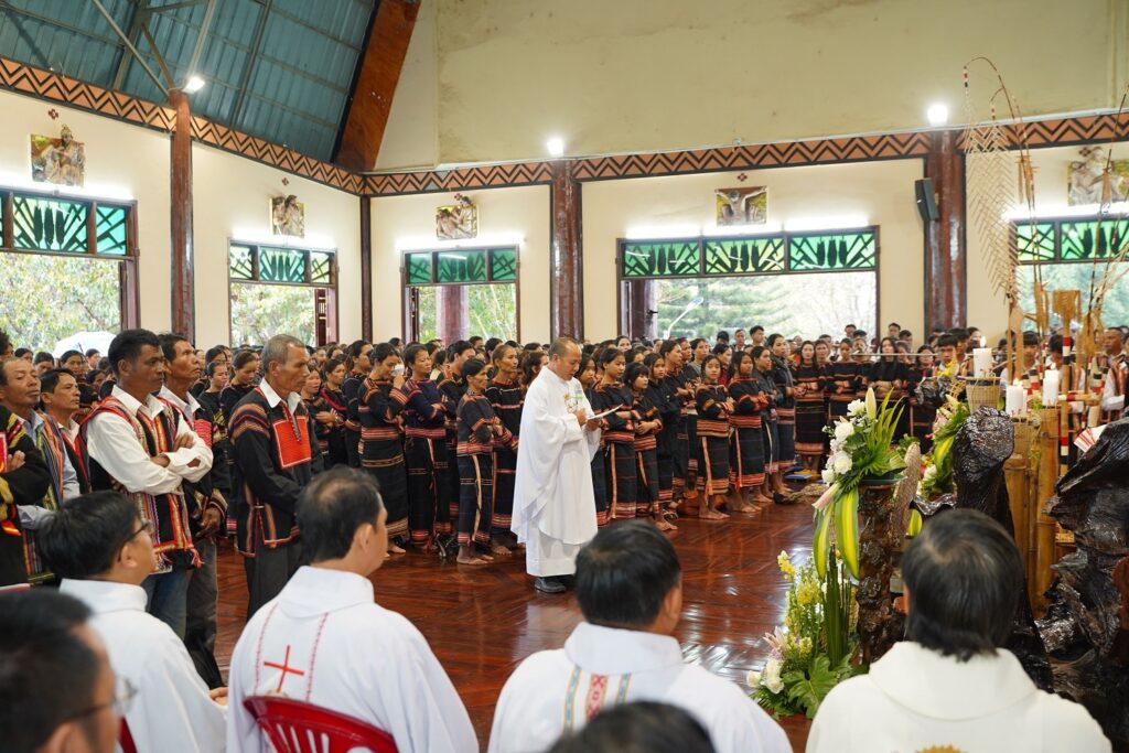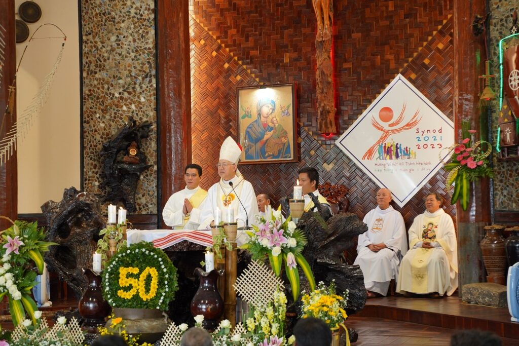 Chủ tế Thánh Lễ tạ ơn mừng 50 năm thành lập giáo xứ Plei Chuêt là Đức Cha Aloisio Nguyễn Hùng Vị – Giám Mục Giáo Phận Kontum. Cùng hiệp thông với Đức Cha có quý Cha, quý tu sĩ nam nữ và cộng đoàn.