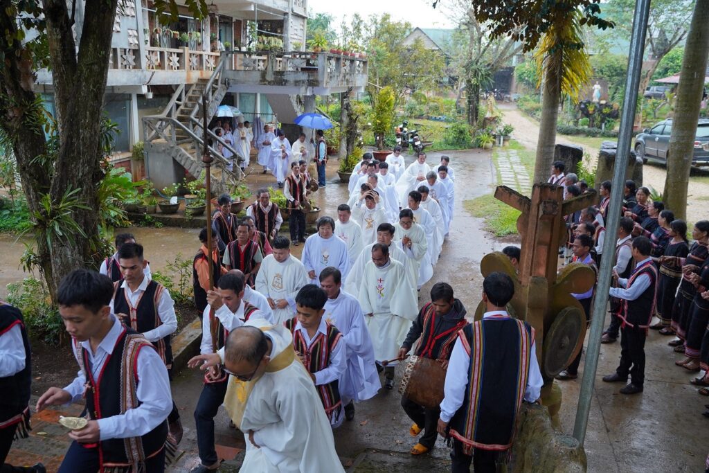 Cuối cùng, bữa cơm huynh đệ được giáo xứ khoản đãi để mừng ngày hôm nay. Những bài hát, những vũ khúc đậm sắc Jrai được gửi đến cộng đoàn khi cộng đoàn dùng bữa.