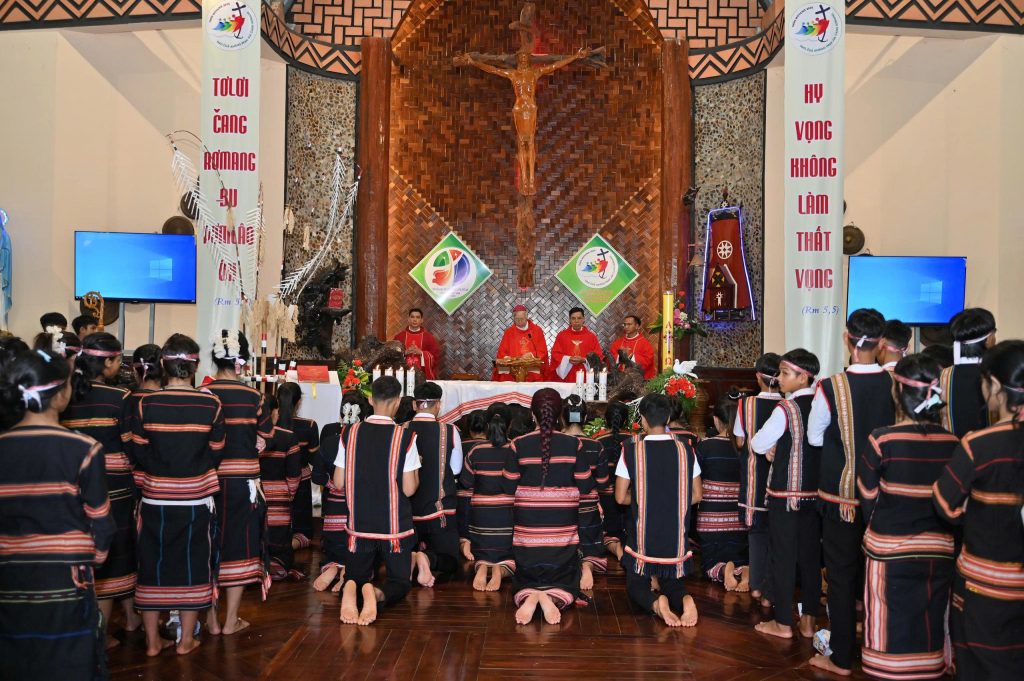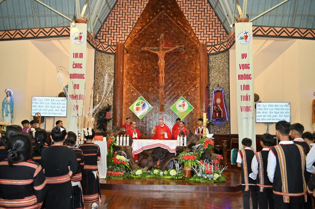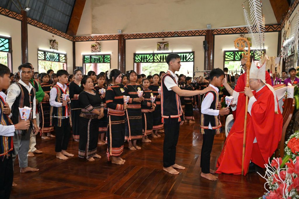 Vào lúc 9g00 sáng Chúa Nhật XX Thường Niên (31/08/2025), tại nhà thờ giáo xứ Plei Chuet – giáo hạt Pleiku, 182 em thiếu nhi của hai giáo xứ Plei Chuet và Plei Jut đã hân hoan lãnh nhận Bí tích Thêm sức. Thánh lễ trọng thể do Đức Cha Aloisiô Nguyễn Hùng Vị, Giám mục giáo phận Kon Tum, chủ tế. Hiện diện trong thánh lễ có quý Cha chính xứ, quý Cha trong giáo hạt, quý tu sĩ nam nữ cùng đông đảo cộng đoàn dân Chúa.